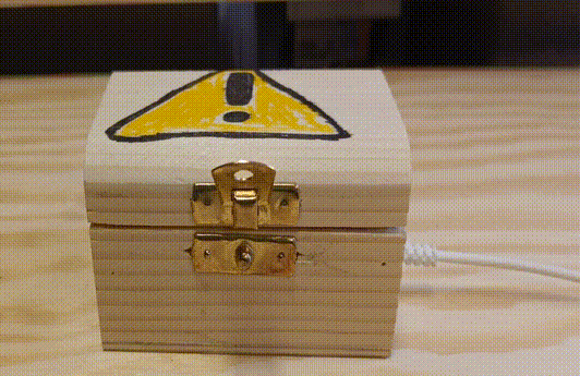 A microphone circuit detects sound and triggers the monster if you knock on the box. When it triggers, it will open the lid, keep the lid open for a short time, then close the lid again. Inside the box, there's a tiny monster peeping out.