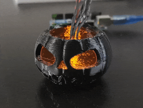 I 3D-printed my pumpkin, but you can place your LEDs in whatever you have at hand. For example a carved pumpkin or an old lantern.
