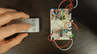 In the previous email, I was able to turn an LED on for one second using any remote control. Today, I expanded on that to toggle it instead.