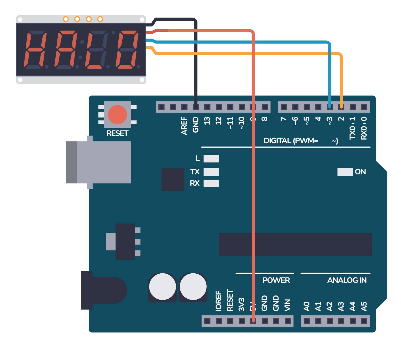 To show you how simple things become when you use a microcontroller, check out this digital clock that uses only two components, Arduino and display.